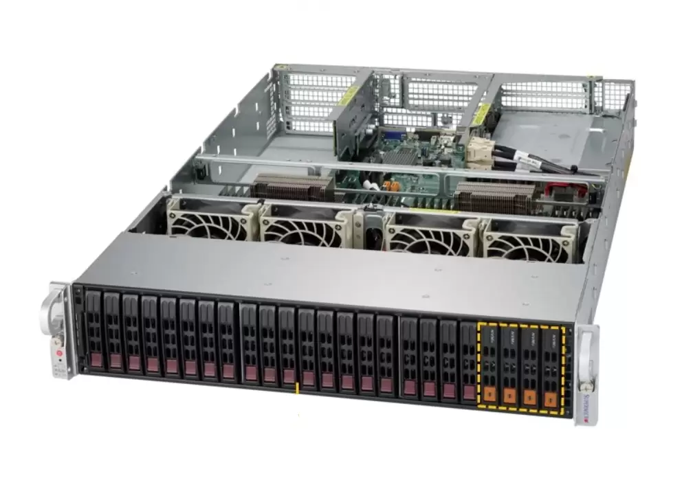 2x Intel® Xeon® processor E5-2600, 16 DIMM DDR, 2 SATA3 (6 Gbps) + 24xU.2 NVMe, 2000W
