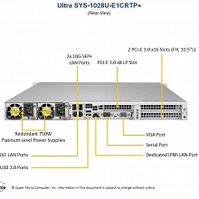 2х RJ45 GbE LAN ports, 1х 10G SFP+ ports, 1x RJ45 Dedicated IPMI LAN port, 5х USB 3.0 (2 сзади, 2 спереди, 1 Type A), 1x VGA, 1 Serial header |